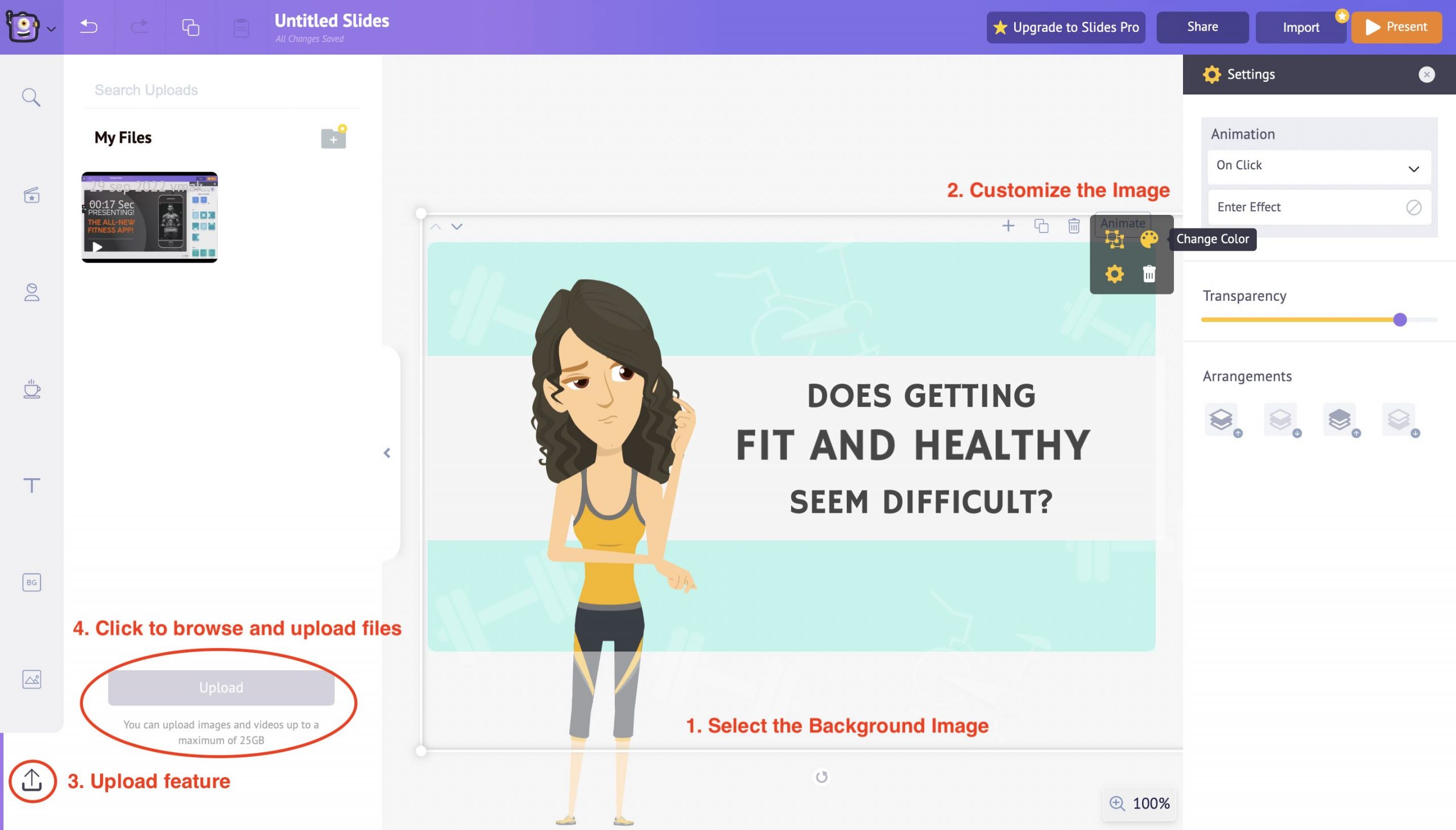 However, if you are still unhappy with the customizations, Animaker Deck has covered you with the Upload option.